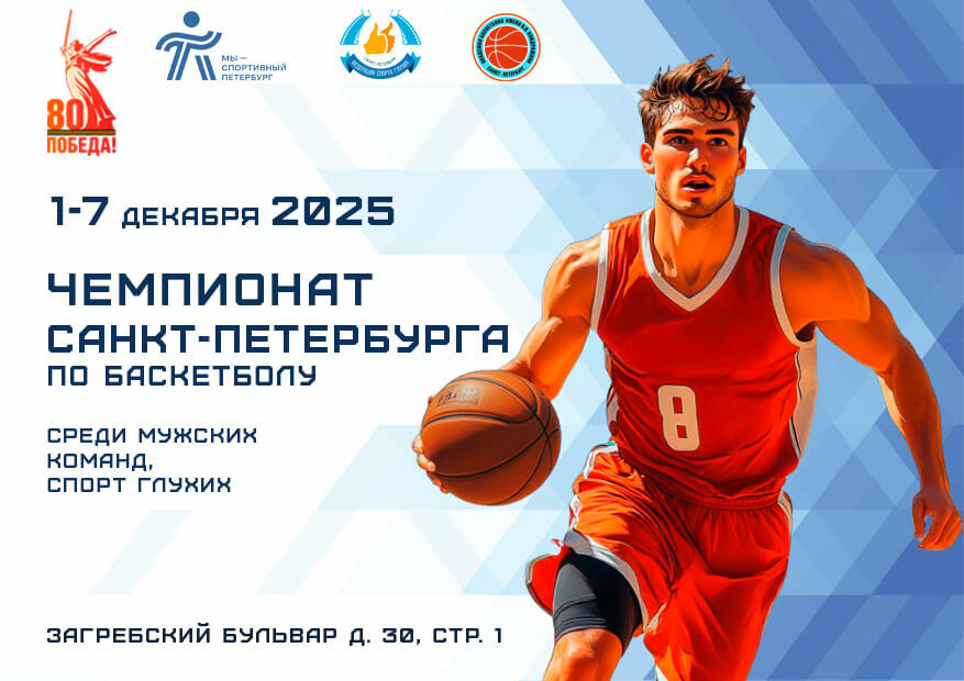 С 1 по 7 декабря в Академии баскетбола им. В.П. Кондрашина (Загребский бульвар, 30, стр. 1) состоится Чемпионат Санкт-Петербурга по баскетболу среди мужских команд, спорт глухих.