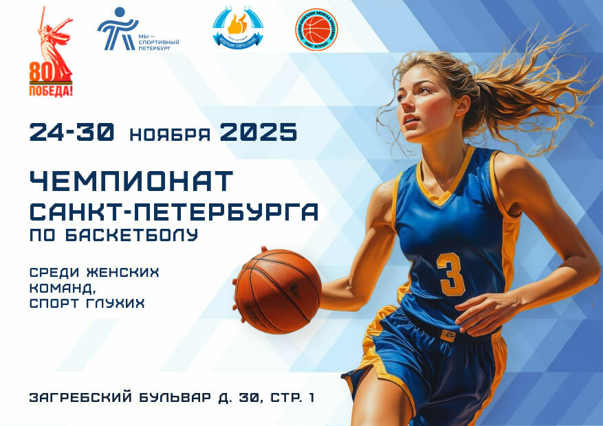 С 24 по 30 ноябряв Академии баскетбола им. В.П. Кондрашина (Загребский бульвар, 30, стр. 1) состоится Чемпионат Санкт-Петербурга по баскетболу среди женских команд, спорт глухих.