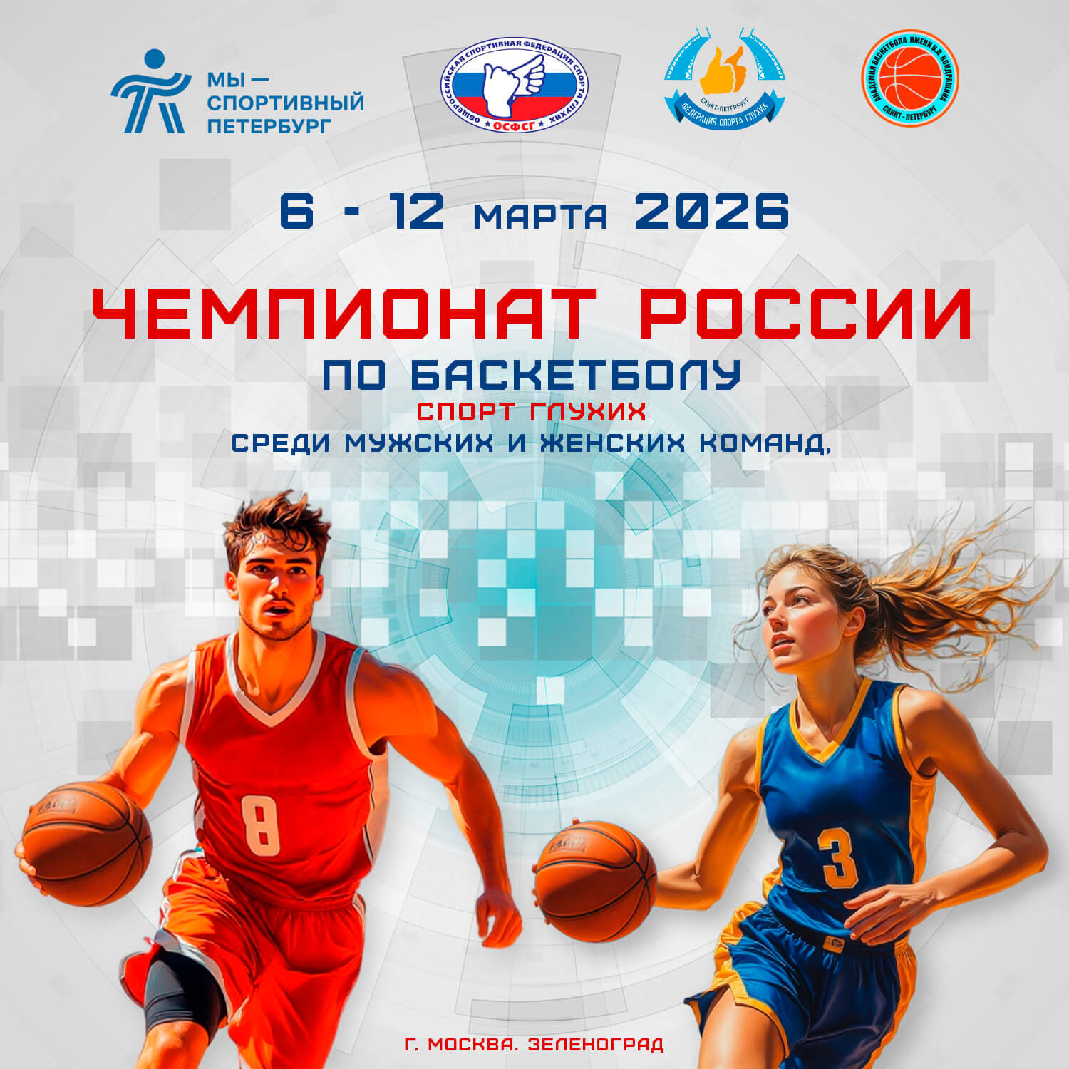 С 6 по 12 марта в АО Москвы, г. Зеленоград состоится Чемпионат России по спорт глухих (дисциплина баскетбол). Честь Северной столицы будут защищать сразу две сборных команды Санкт-Петербурга, сформированные на базе нашей Академии!