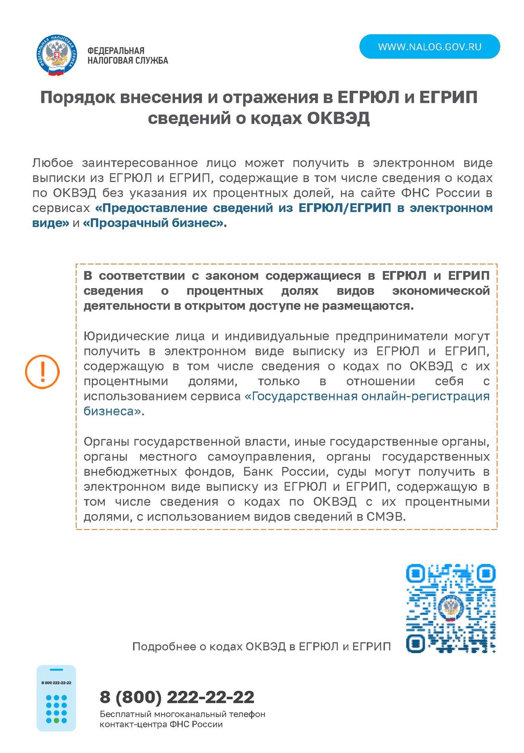 ФНС информирует о переходе на новый порядок внесения кодов ОКВЭД в реестры ЕГРЮЛ и ЕГРИП.