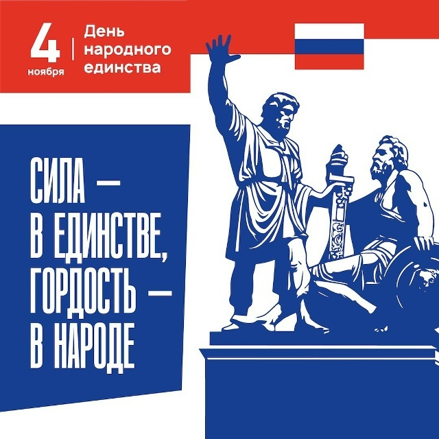 Сегодня мы отмечаем День народного единства — праздник сплочённости, силы и гордости за нашу страну.Эта дата напоминает, что вместе мы способны преодолеть любые испытания, ведь в единстве народа — его сила!