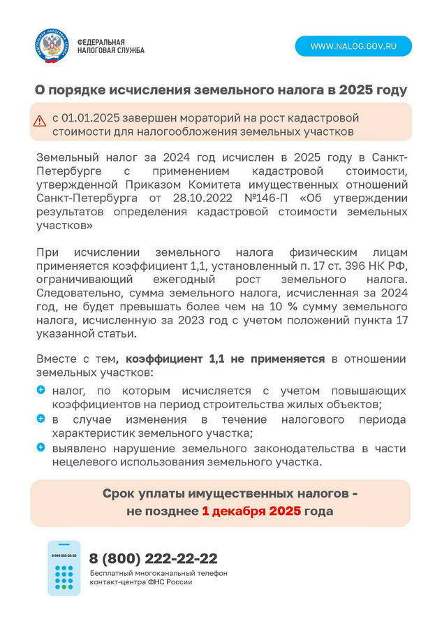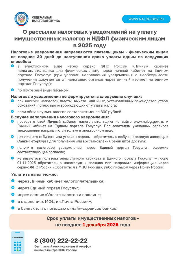 Управление ФНС России по Санкт-Петербургу напоминает о сроках уплаты налогов физическими лицами, особенностях применения специальных налоговых режимов, важности своевременной уплаты налогов и преимуществах легального бизнеса.