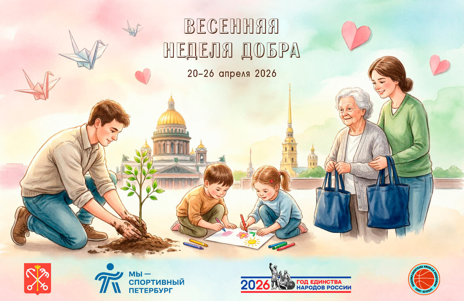 С 20 по 26 апреля 2026 года в Санкт-Петербурге проходит общегородская добровольческая акция «Весенняя неделя добра», и Академия баскетбола имени В.П. Кондрашина приглашает вас принять участие!