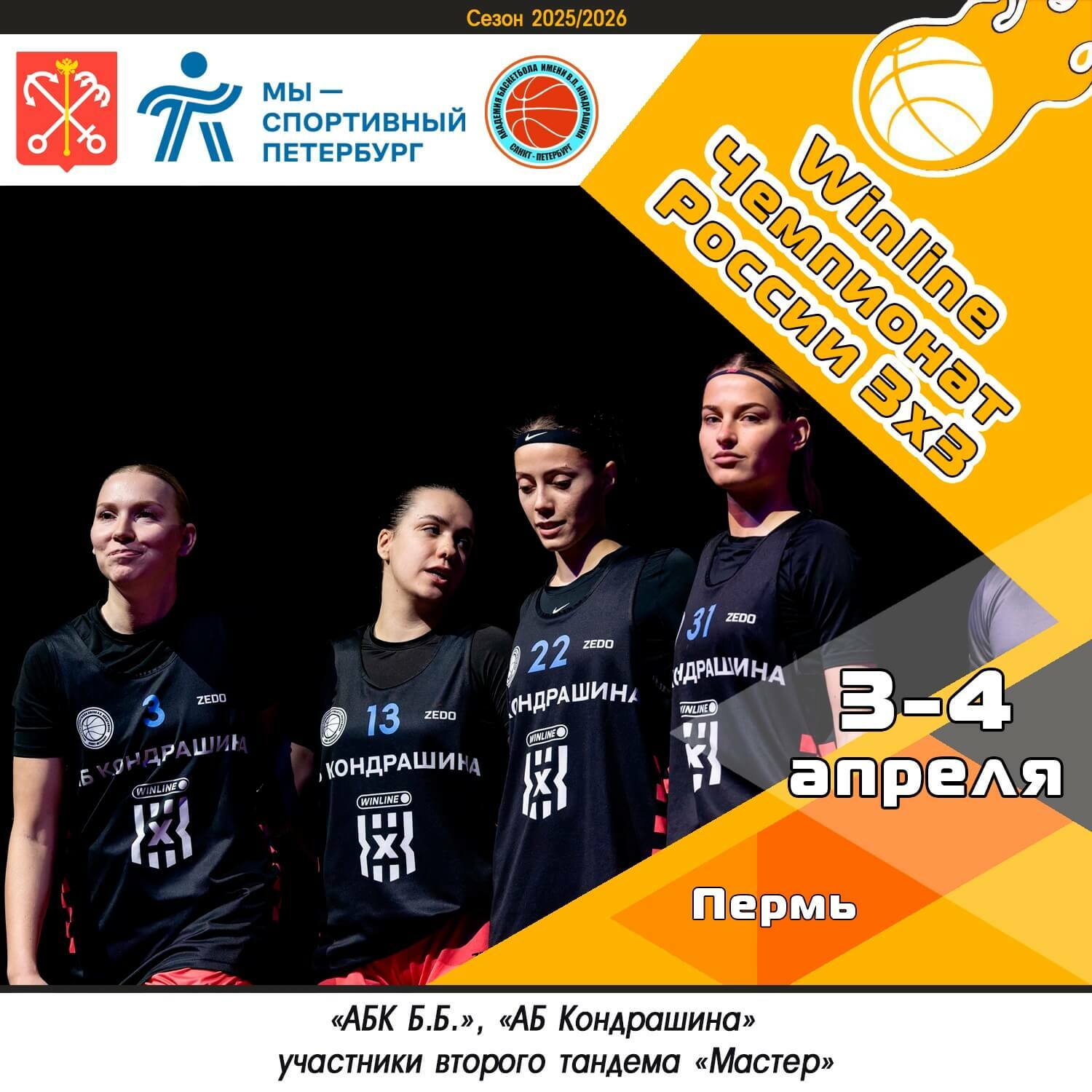 3 - 4 апреля в городе Пермь стартует второй тандем «Мастер» Winline Чемпионата России по баскетболу 3х3! В нём примут участие две команды нашей Академии: женская и мужская.